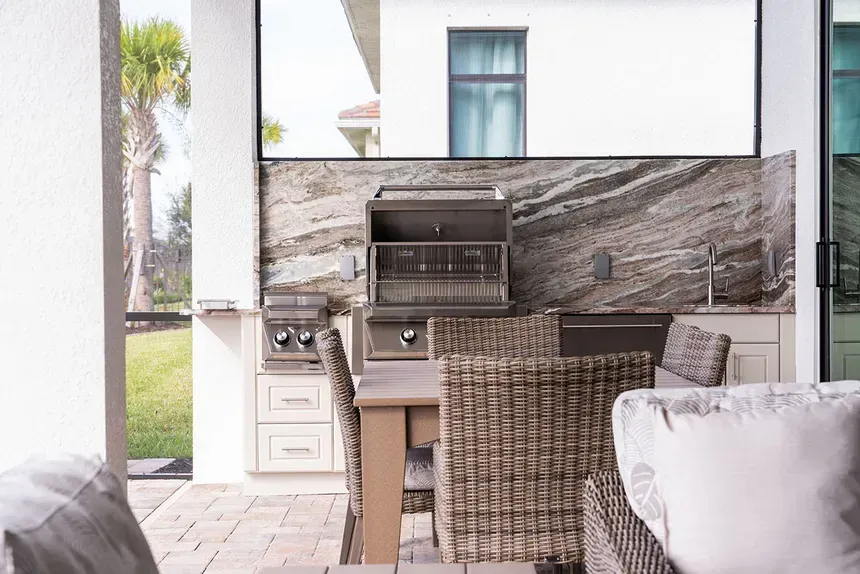 From outdoor-rated refrigerators to custom cabinetry, every detail is designed for convenience and longevity.